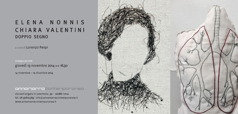 - DOPPIO SEGNO- Elena Nonnis Chiara Valentini | doppia personale a cura di Lorenzo Respi | Galleria Anna Marra Contemporanea 13.11/14.12.2014 | Roma 2014 | catalogo