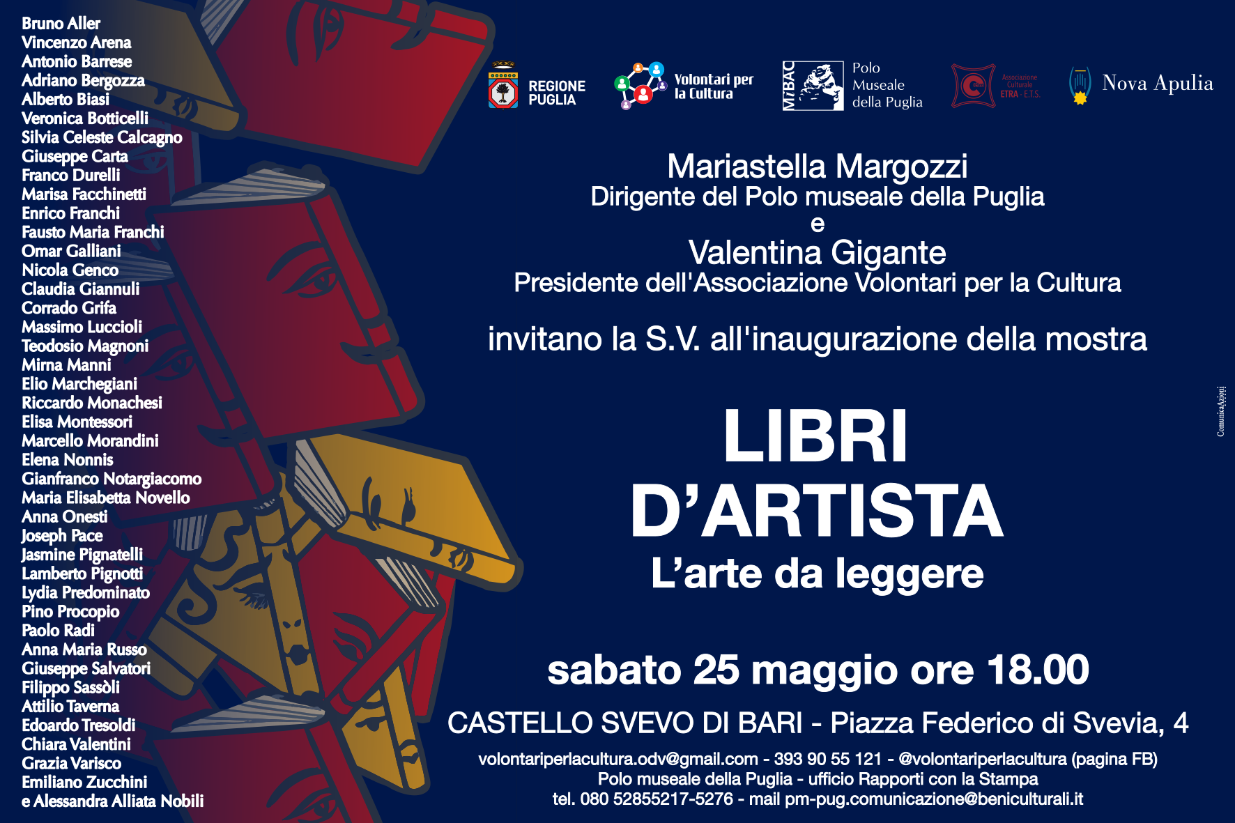 http://www.baritoday.it/eventi/libri-artista-bari-mostra-castello-svevo-25-maggio-9-settembre-2019.html?fbclid=IwAR32p1HJWSE0SzHVWwqotLrSLGOb9NJ2HsPSmaapY_8p_asVjG3gsv5VuV8