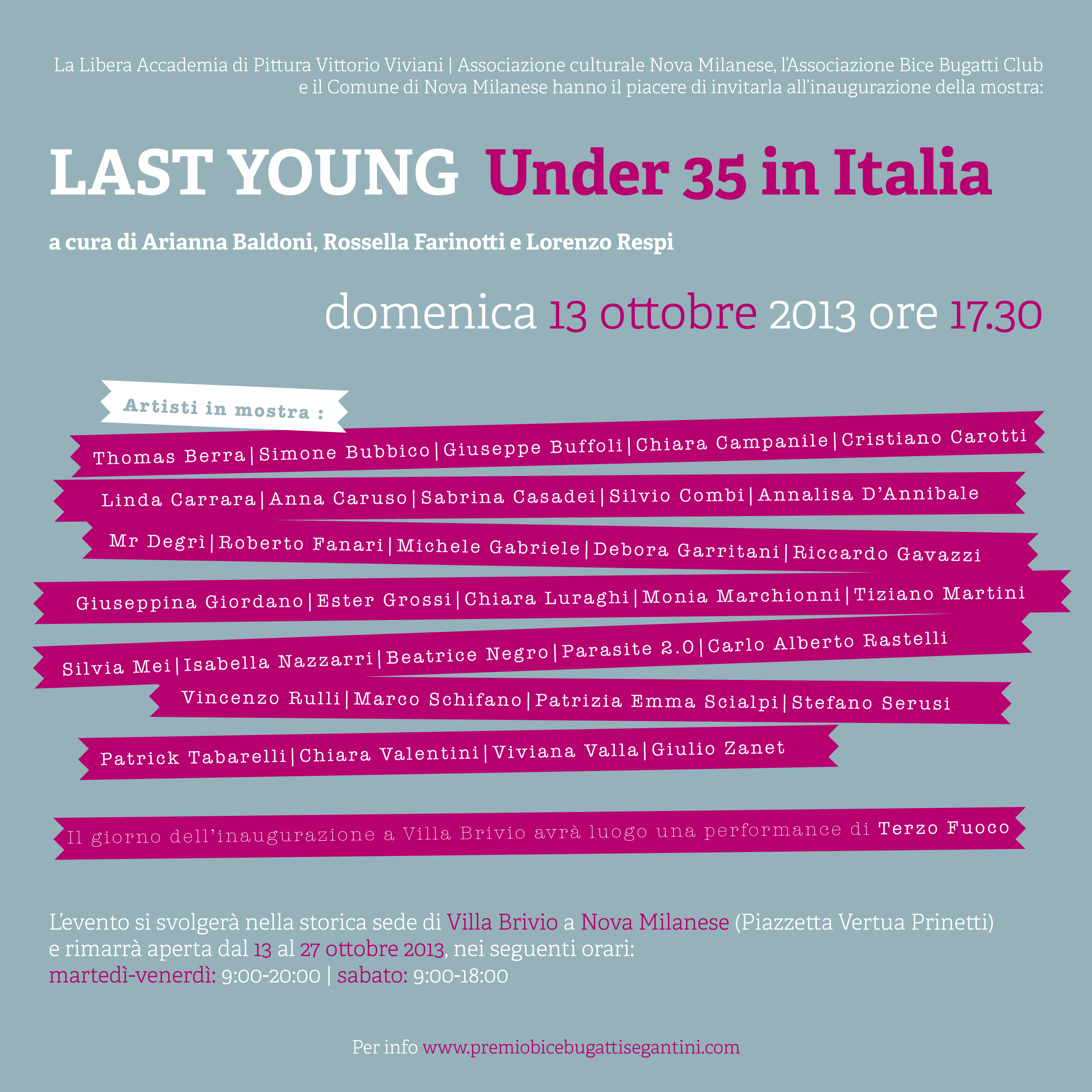 - LAST YOUNG Under 35 in Italia | a cura di Arianna Baldoni, Rossella Farinotti e Lorenzo Respi, con il patrocinio di: Libera Accademia di Pittura Vittorio Viviani, Associazione culturale Nova Milanese, Associazione culturale Bice Bugatti Club, Comune di Nova Milanese. Villa Brivio, Nova Milanese | catalogo 2013 http://www.lobodilattice.com/blog/last-young-ancora-immagini-zeno-zotti